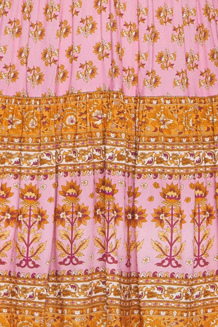 - Deep flutter hem detailed with beautiful contrast print placement.