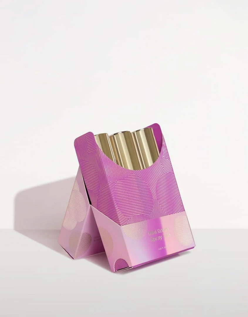 A brand new, Limited Edition gift set containing three Mini Room Sprays. Presented in Limited Edition packaging that features a traditional palette with elements of contemporary pop colours and ethereal gold detailing.