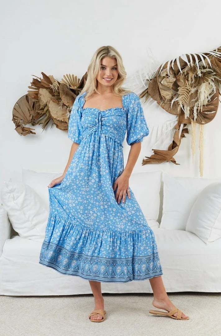 We’re always keen for a bold floral style! Wear Your ‘Dua Maxi Dress’ By Iris Maxi Label with heeled sandals and a straw bag all season long. Pairing a beautiful boho floral print, choose to wear on or off the shoulder neckline and a gorgeous small Hi-Low hemline, we are in Love!
