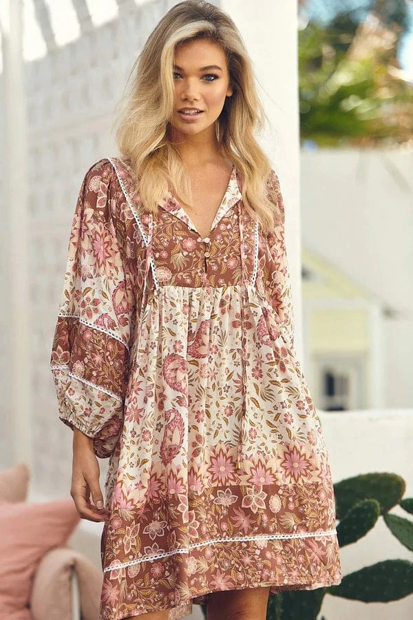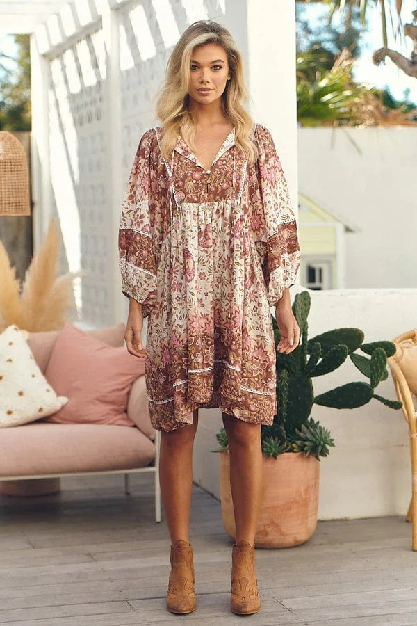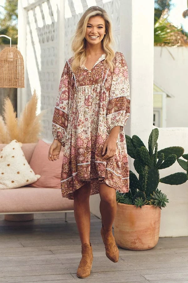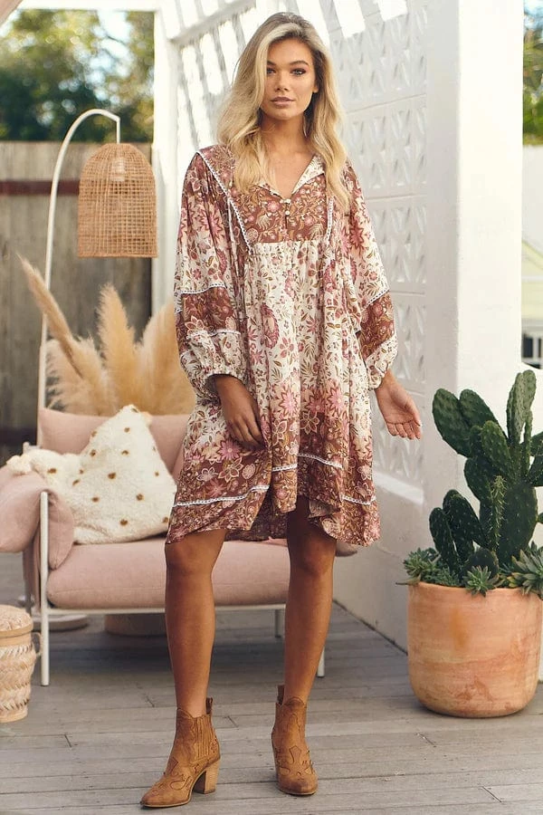 The perfect Boho Midi Dress for any season! Our most popular ‘Adela Midi Dress’ is back! Featured in the latest collection ‘Flower Fields’ by Jaase Clothing Australia. This stunning, multi-toned floral dress features a relaxed oversized fit (recommend going down a couple of sizes) and midi length. We love it paired with a Boho Cardigan for a picnic on a cooler day.Â