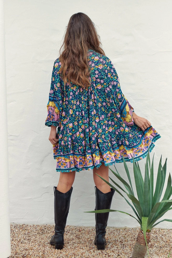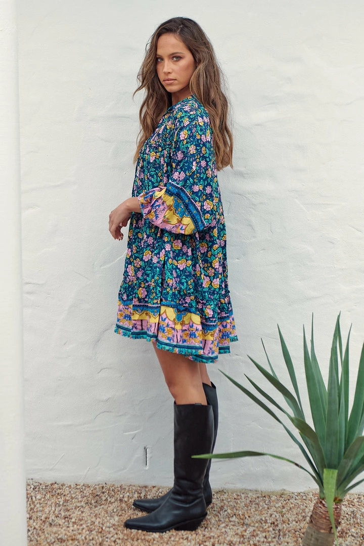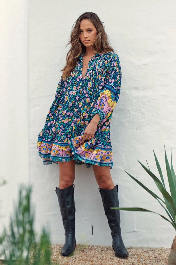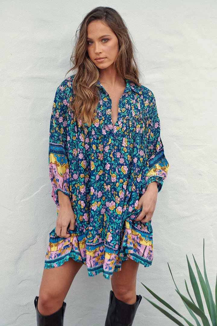 How dreamy is our multi toned ‘Aimee Dress’. This boho mini dress features a flowy oversized style, buttons through on the front, textured material and a relaxed fit.