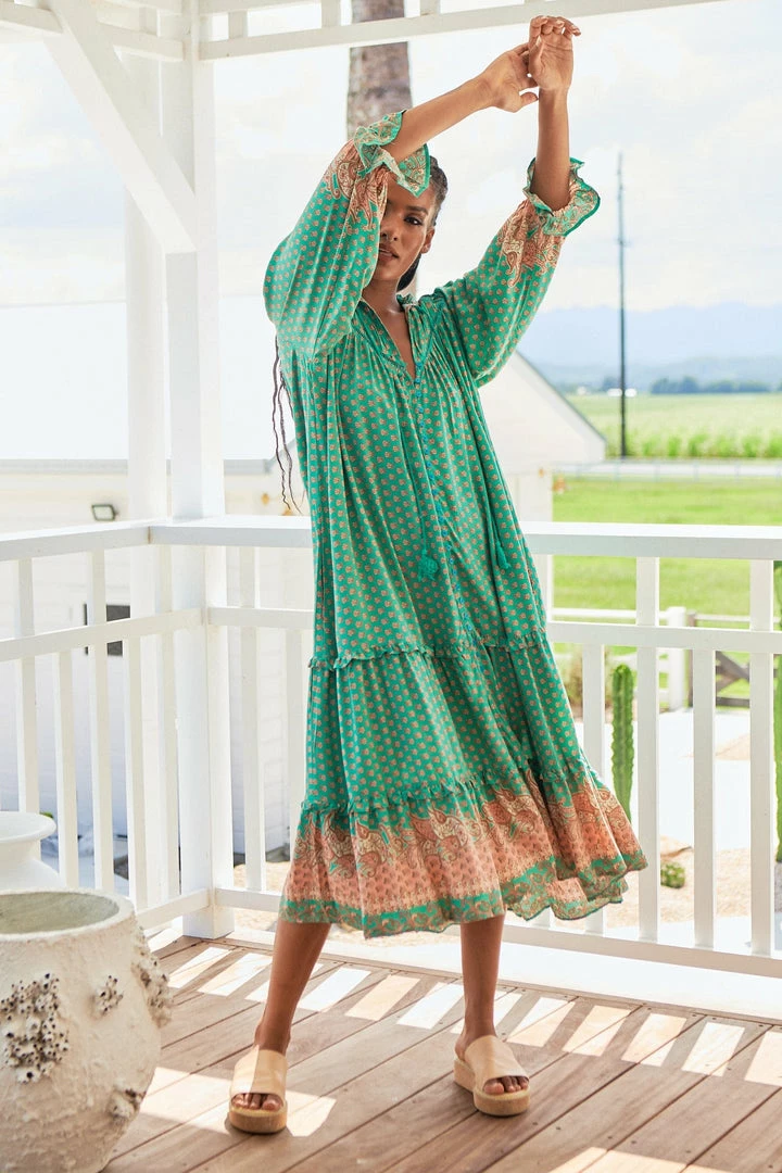 - Timeless Midi dress silhouette with fitted shoulder and floaty skirt