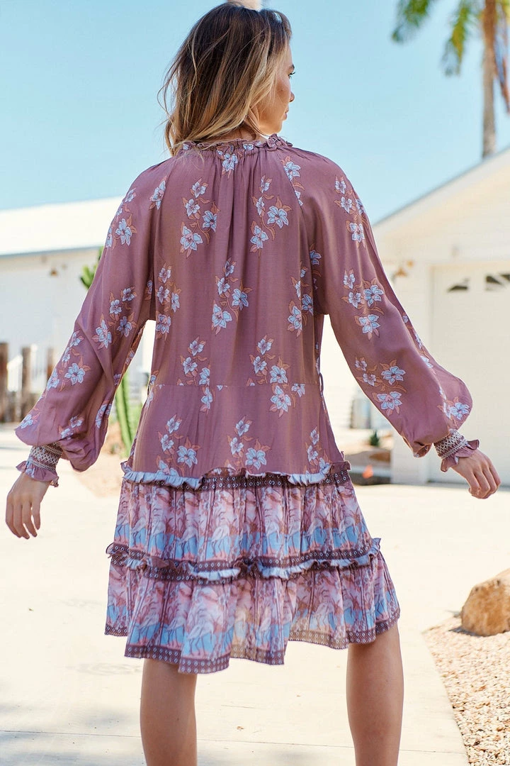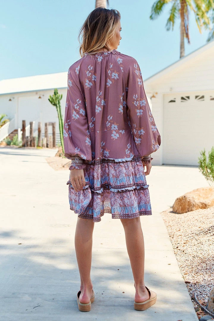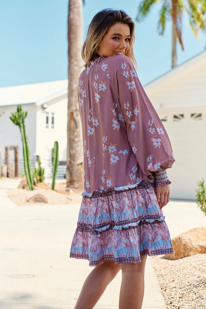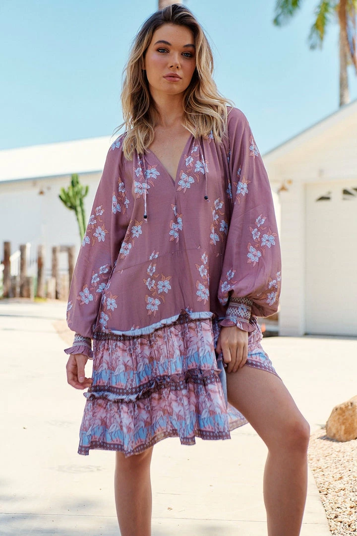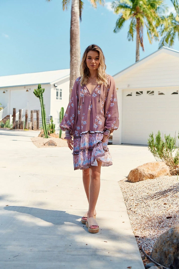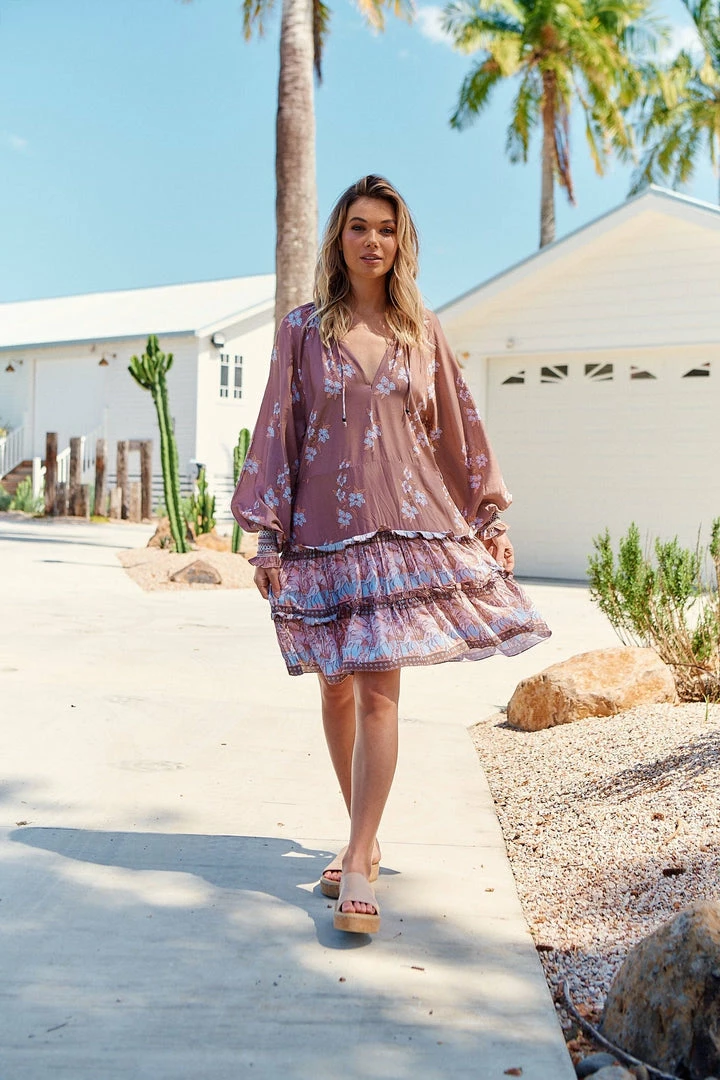 Are you ready for a day out in the sun in our ‘Duke Mini Dress’?! This dress is perfect for every girl featuring a beautiful chocolate brown tone, long lantern sleeves with elasticated cuffs, v-neckline with ties and an overall relaxed fit.Â