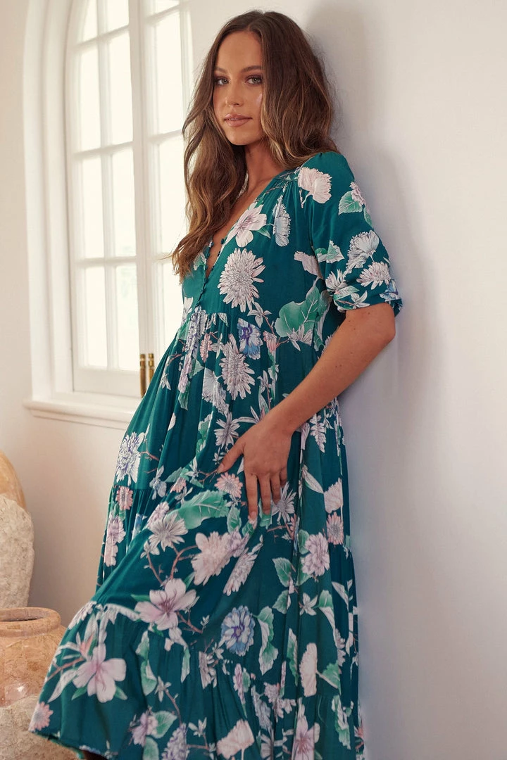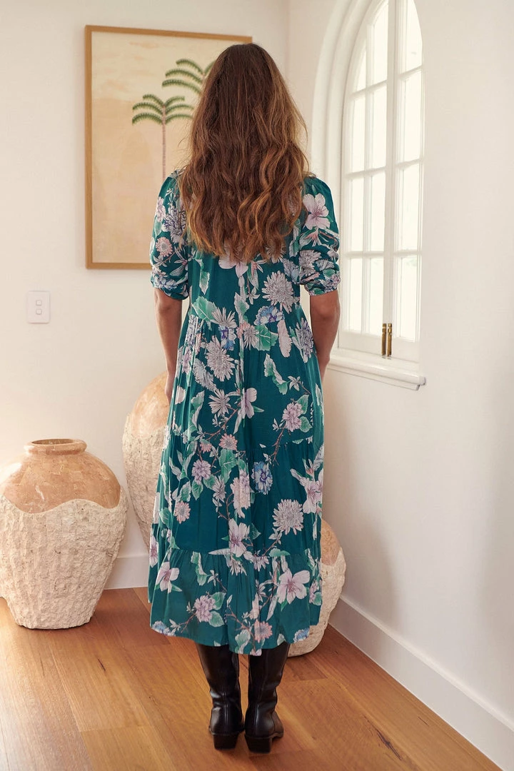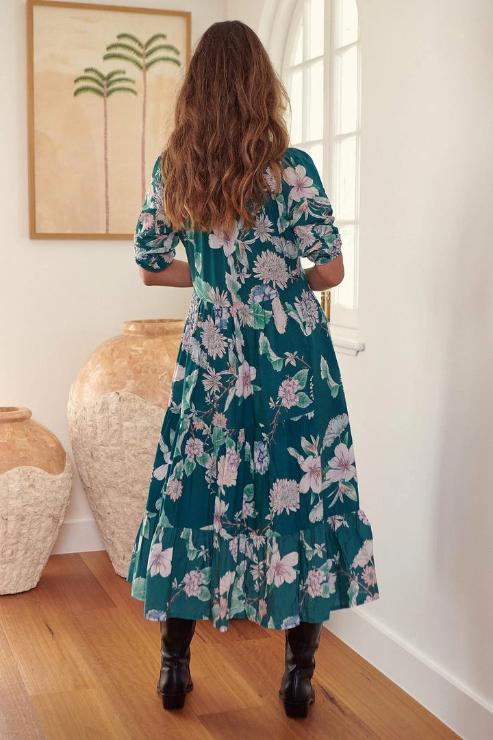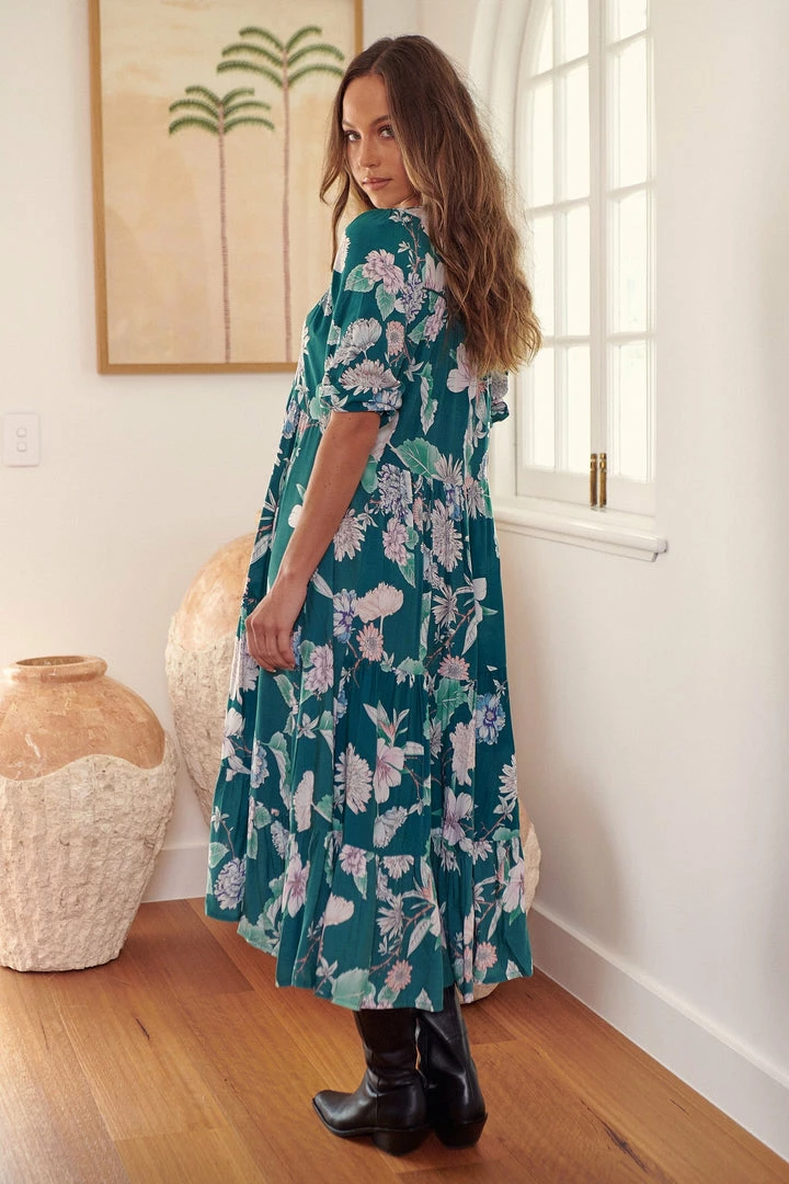 A Boho Midi Dress perfect for any occasion. This stunning new collection by Jaase is called ‘Araminta’ and ‘Oh My’ has it got our hearts skipping a beat! Featured in a three quarter sleeved, slouchy silhouette with a piping detail on back. Tie waist for added shape, and a relaxed flowy fit.