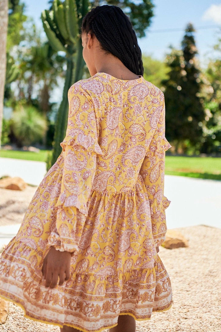 Calling all our paisley lovers, you need our “Fey Mini Dress” in your wardrobe. This yellow printed mini dress will be your go to outfit for any daytime dates that you have planned.Â