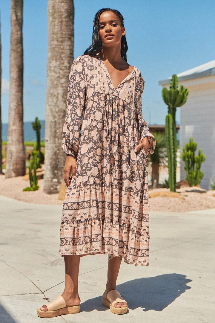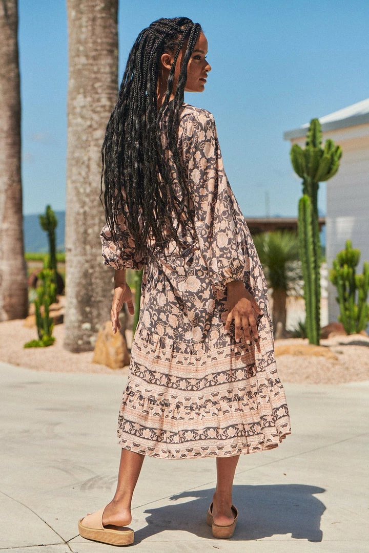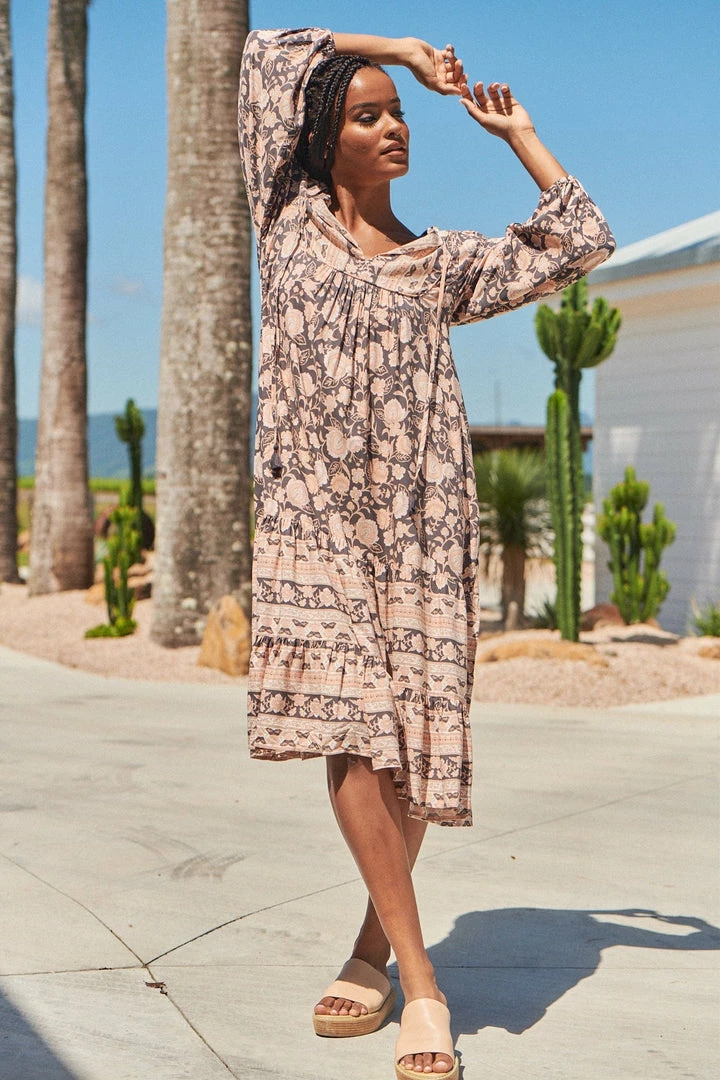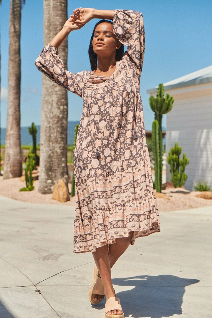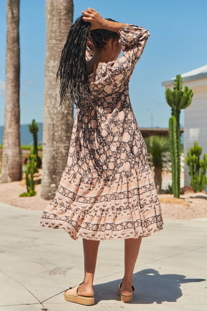 Perfect for any occasion. The Latest ‘Liliana Midi Dress’ by Jaase in the ‘Quartz’ collection is one you will want to wear on repeat over and over. Long balloon sleeves with elastic cuff. The Liliana is so comfortable to wear while still being a slimmer shape midi with skirt frills to add to this feminine shape.