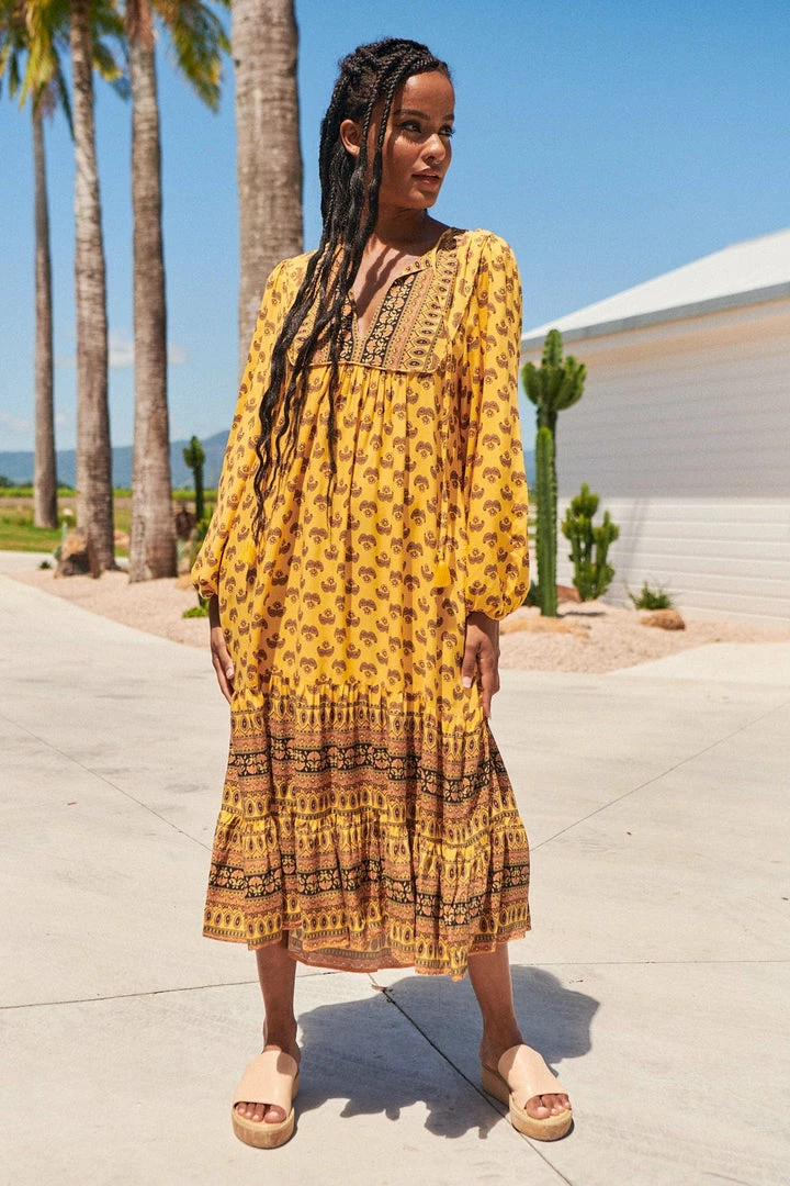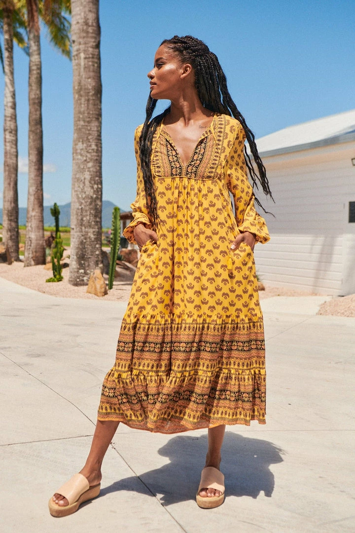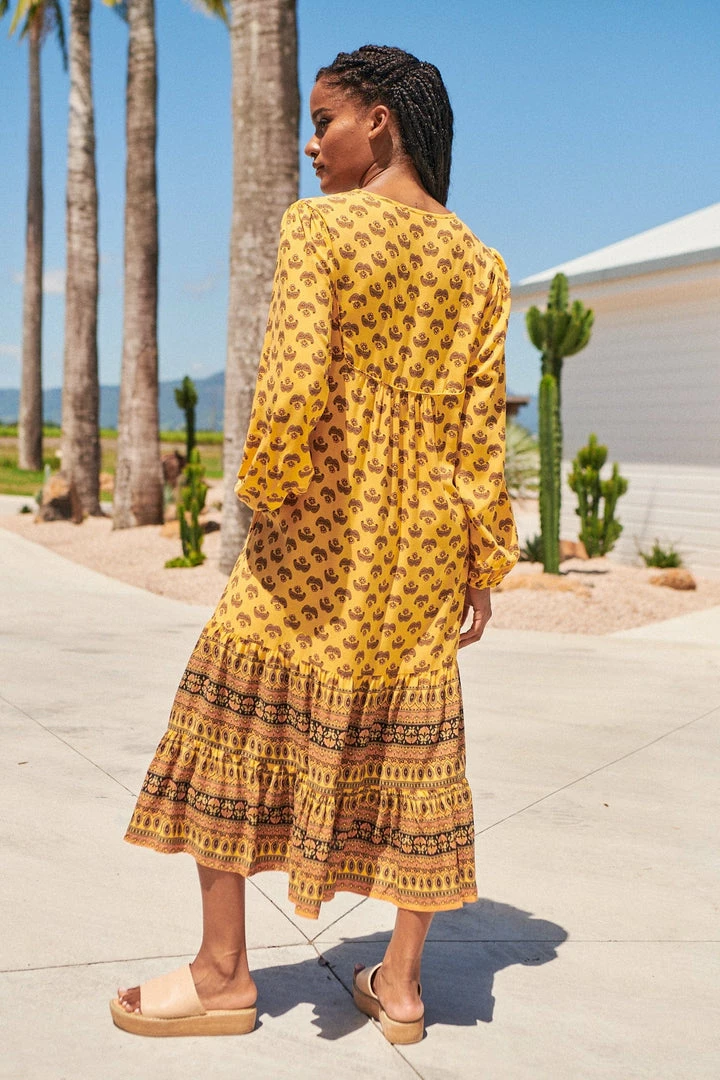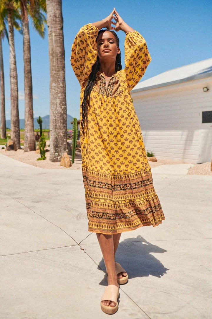 Perfect for any occasion. The Latest ‘Liliana Midi Dress’ by Jaase in the ‘Sunbeam’ collection is one you will want to wear on repeat over and over. Long balloon sleeves with elastic cuff. The Liliana is so comfortable to wear while still being a slimmer shape midi with skirt frills to add to this feminine shape.
