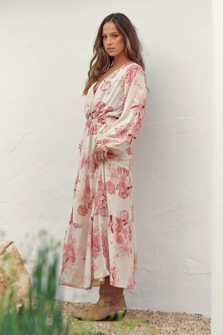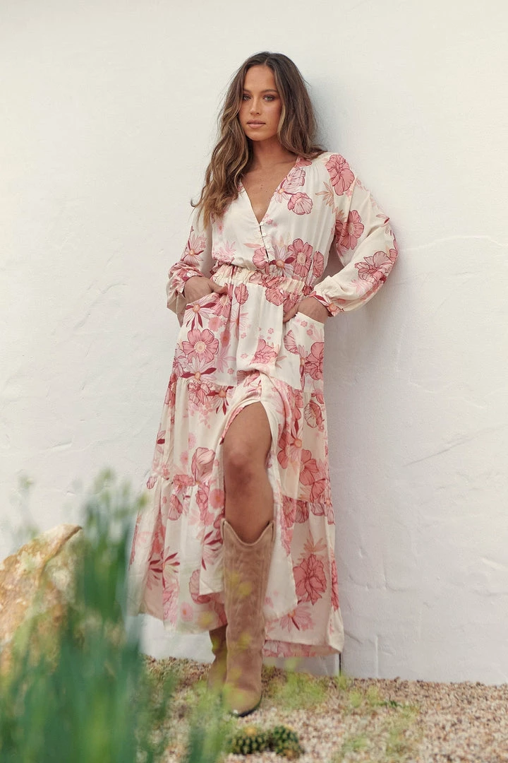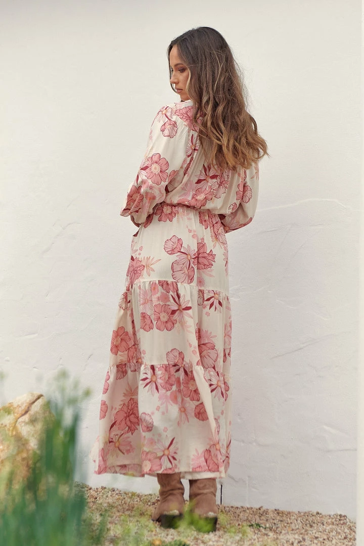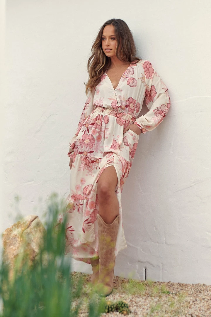 Nothing quite like a bold floral print to add some spark to your wardrobe. Our ‘Otto Maxi Dress’ features a beautiful pink floral print, Long sleeves with elasticated cuff, maxi length and a flowy fit.
