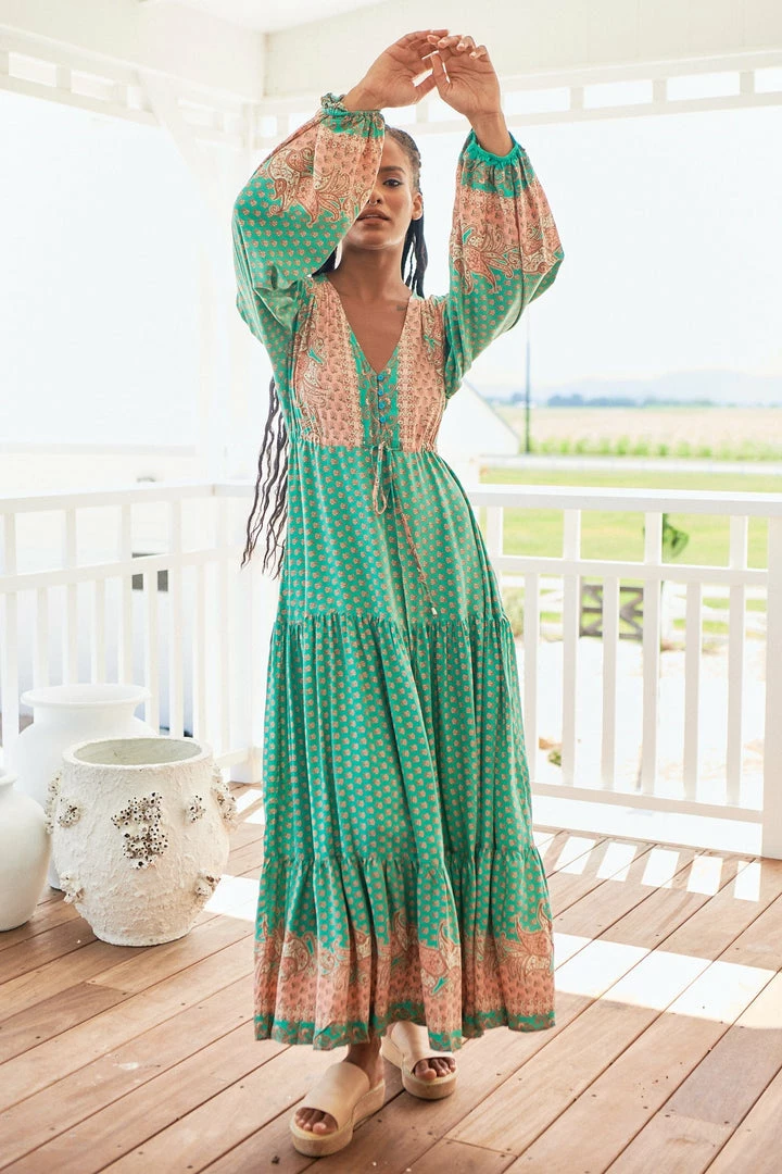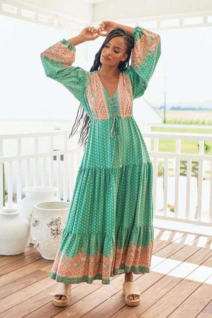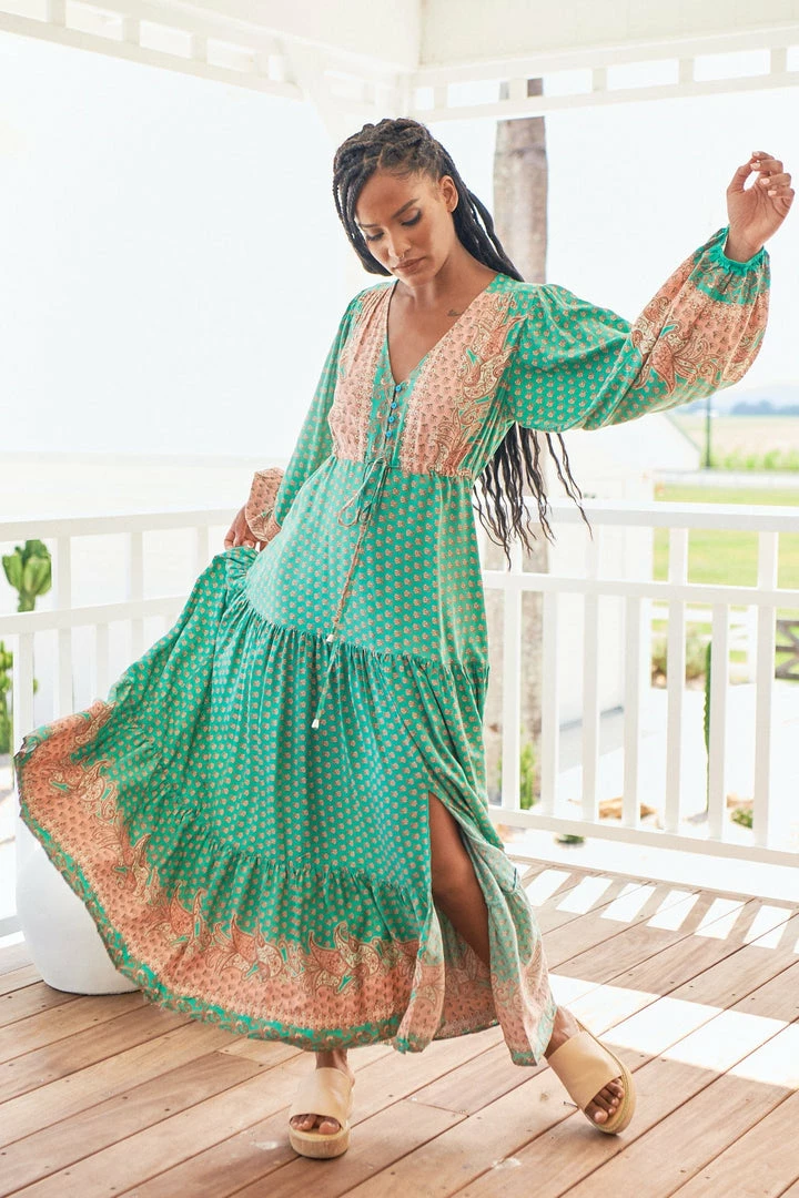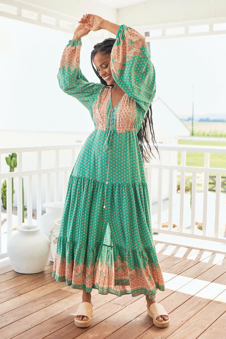 We are Obsessed with our new favourite the Teresa Maxi Dress by Jaase. This beautiful maxi dress is the same fit as the Jaase staple Tessa maxi with an exaggerated boho sleeve this season-less style and print combination is a must have in your wardrobe for all Jaase lovers!