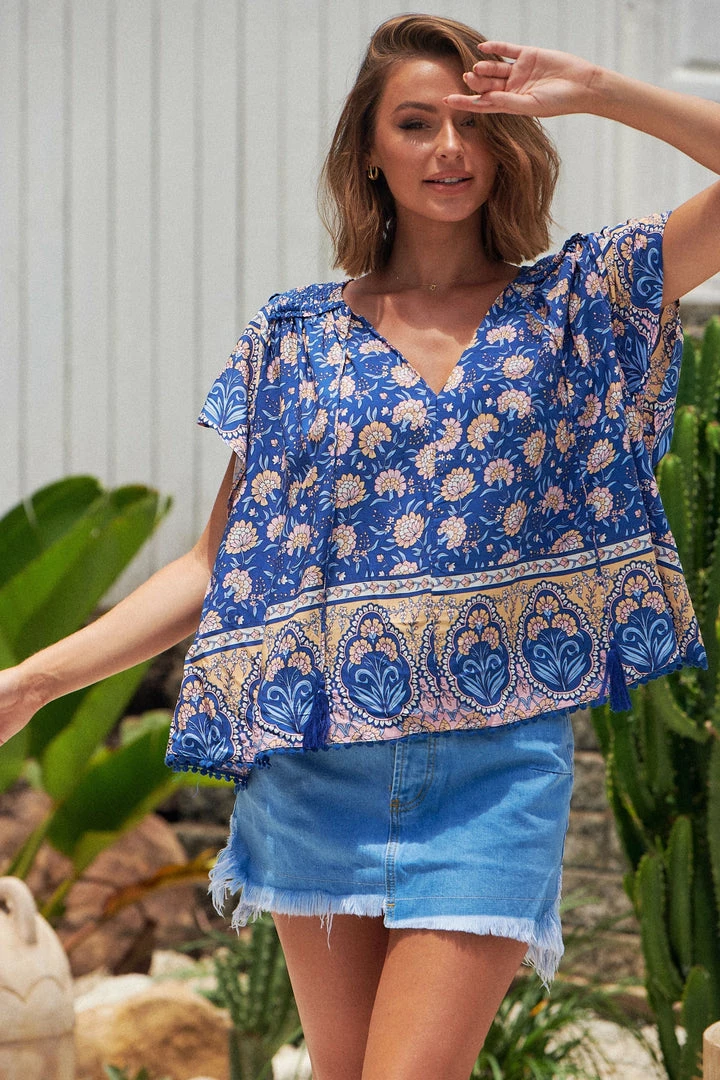 Super vibrant and fun, the ‘Fisico Top’ is the ultimate Summer staple! This top features a beautiful blue tone, Flowy frilled sleeves and a relaxed fit.