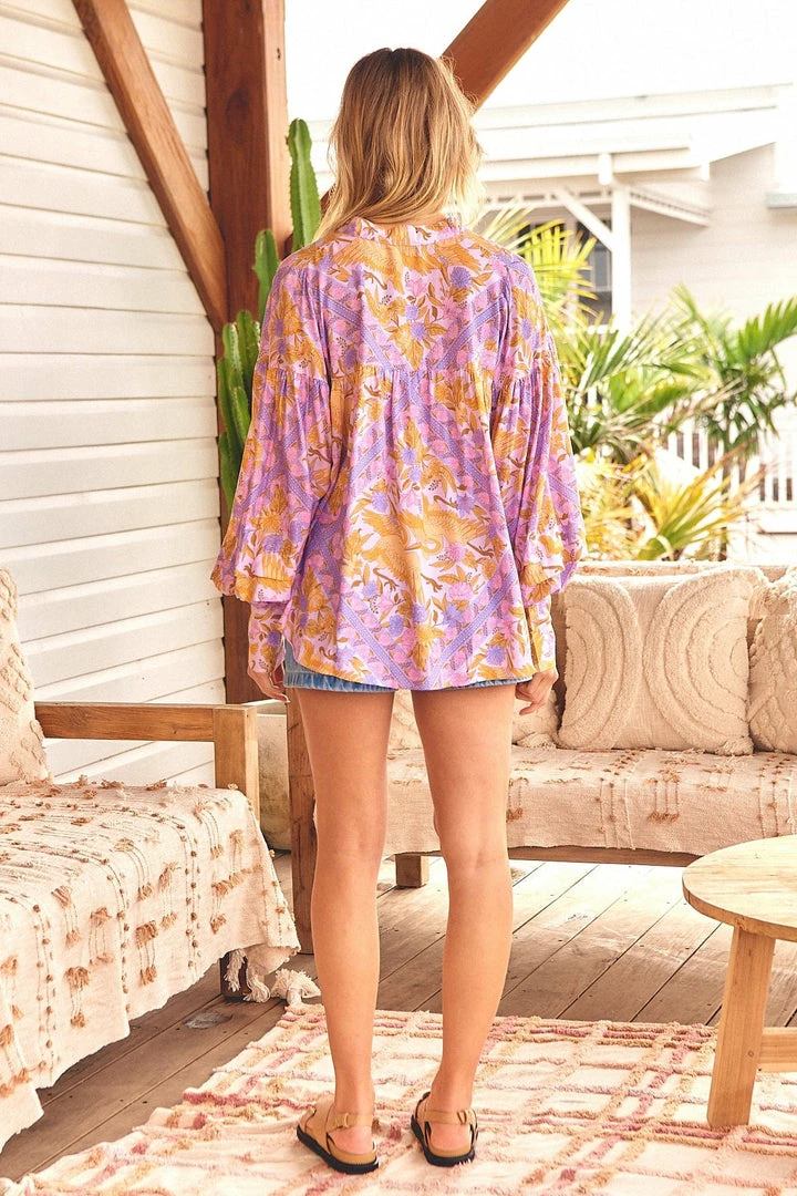 Sophisticated and boho chic, the ‘Folk Blouse’ by Jaase Clothing is an elevated basic that you’ll always be reaching for. Featuring a soft purple tone and soft rayon material, this top has long balloon sleeves with cuffs, v-neckline and an oversized relaxed fit.