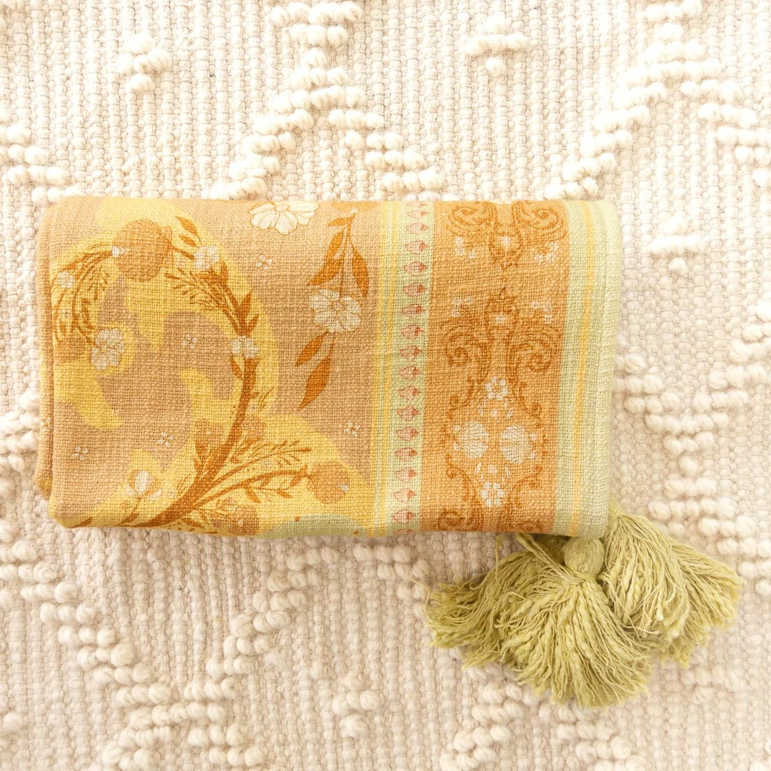 Our Seashell collection features an array of hand drawn seashells mixed with beautiful flowers that dance across a dreamy soft 100% cotton slub fabric, the process of slub fabric gives this fabric an organic carefree feel & look. We have added corner tassels to match each throw, truly topping off that enchanted feel of the designs.Â