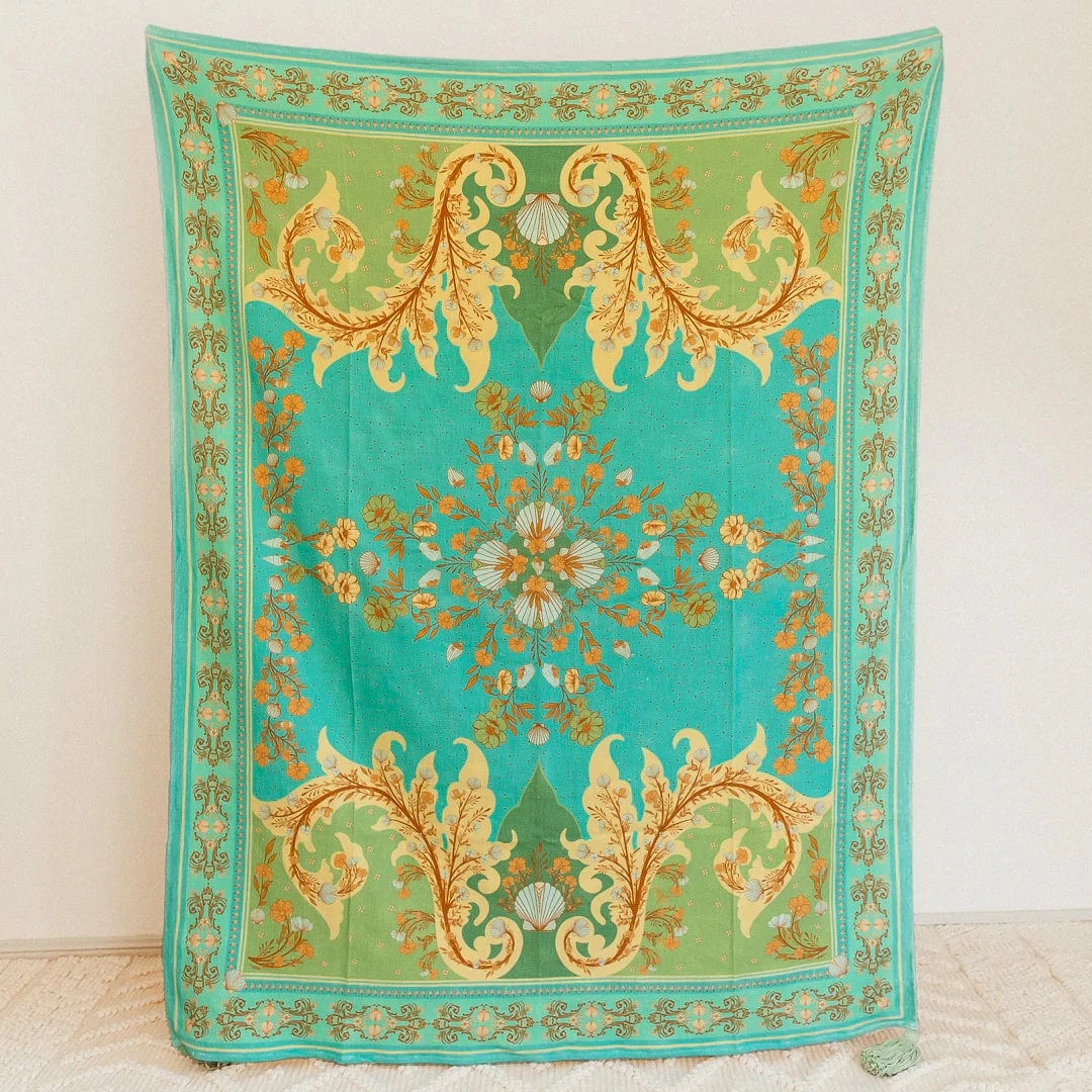 Our throws are for days when you want to effortlessly lounge around on your living room couch, feeling cozy under a beautiful throw blanket. They’re for those times you want a gorgeous printed lightweight throw to bring on your next adventure, to sit on and gaze at the sun setting over the ocean with your best friends & a drink in hand. They are made to keep you warm & comfortable while you throw it around you to keep you warm as the sun fades and the moon rises surrounded by the twinkling of stars in the fresh night air, while you laugh and create memories to last a lifetime…