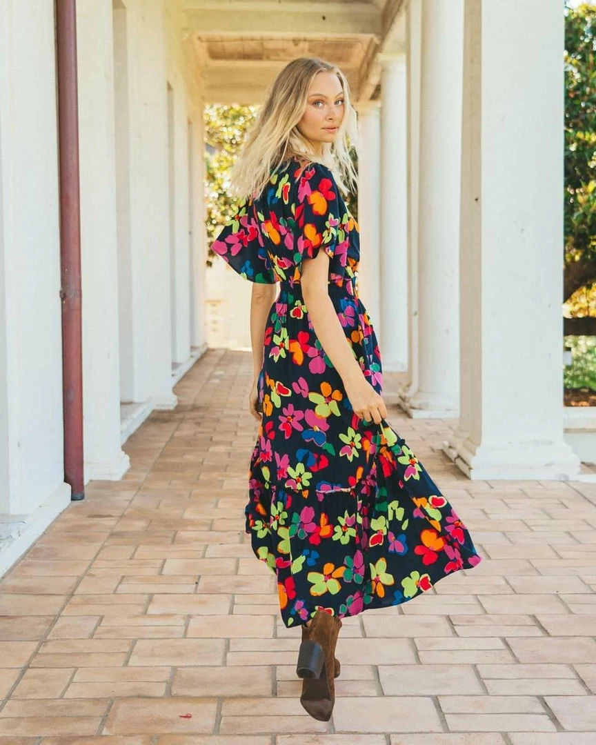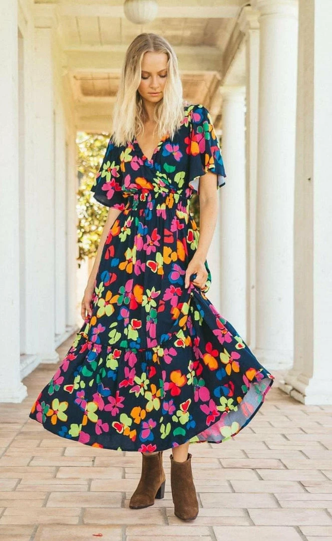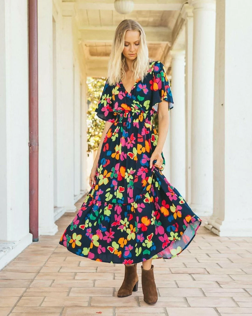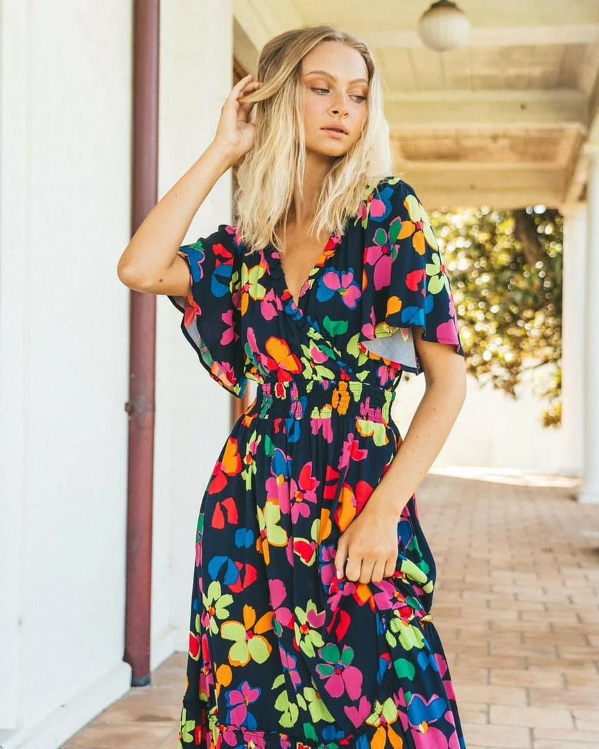 The ‘Addison Maxi Dress’ is a wardrobe staple this season! It features a multi toned floral print perfect for Summer, maxi length, short sleeves and a flowy swishy skirt.Â