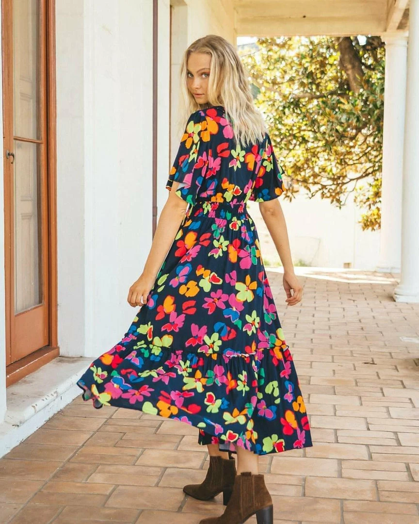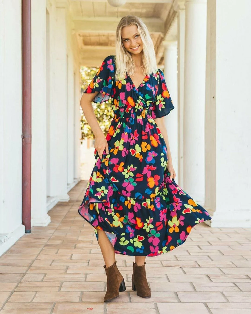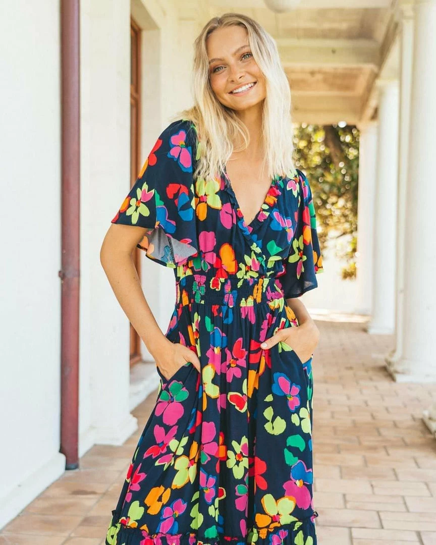 The ‘Addison Maxi Dress’ is a wardrobe staple this season! It features a multi toned floral print perfect for Summer, maxi length, short sleeves and a flowy swishy skirt.Â