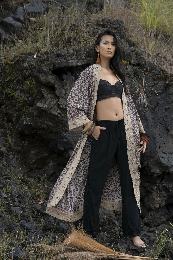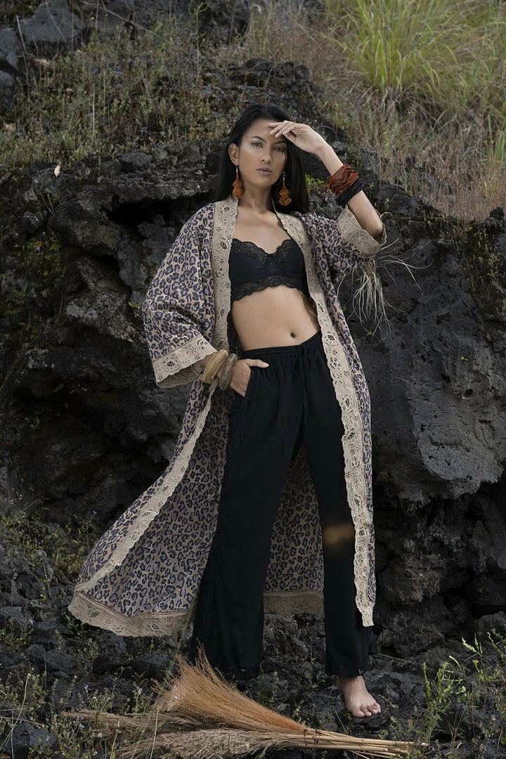 The Stunning Abeke Robe is an essential for all our Kimono Lovers! Manufactured from Super soft and comfortable Rayon in our bold wild heart print, this is a beautiful statement piece. Wear unbuttoned over your intimates or wear as a Duster over your favourite Vintage Tee and Denims.Â