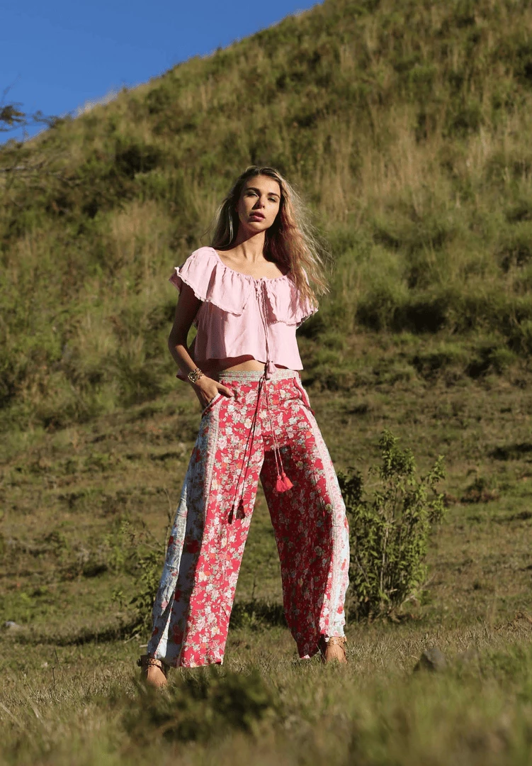 This super comfortable style is yours with our fabulous Hosannah Culottes! Made from our gorgeous rayon, these pants are so light and easy to wear. The relaxed elastic waist is finished with our signature tassels and you will love the useful pockets. A slightly wider, relaxed leg silhouette adds an easy style to your everyday wardrobe. Pair your culottes with one of our beautiful frilled tops to complete your look, or add your favourite tee or soft shirt. These Hosannah Culottes look fabulous with a denim jacket and runners for hitting the shops or coffee with friends. Featuring our stunning Lost in Paradise print with vibrant flowers, these gorgeous culottes are available in three colour ways, Rococo Red, Lapis Lazuli and Lotus.