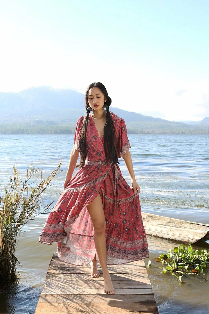 Our new Amira Wrap Dress is the dreamiest boho dress you could imagine. This stunning, feminine piece shapes your body beautifully with its flattering vee neckline and flutter style sleeves.