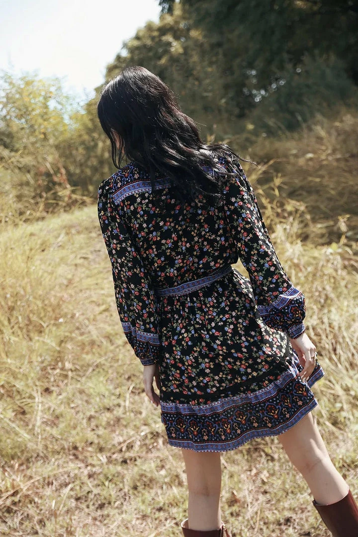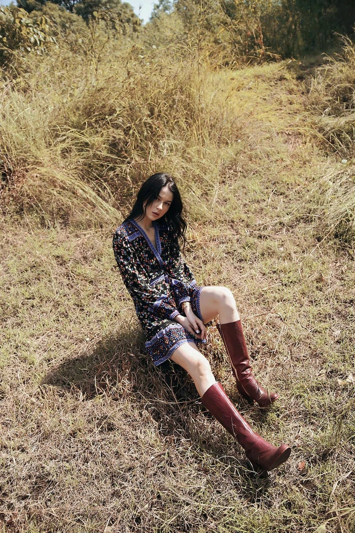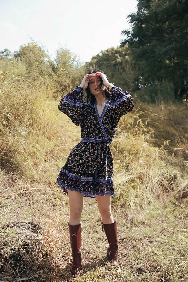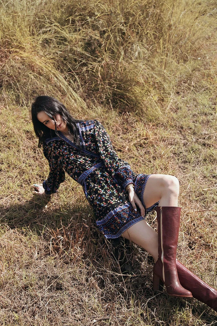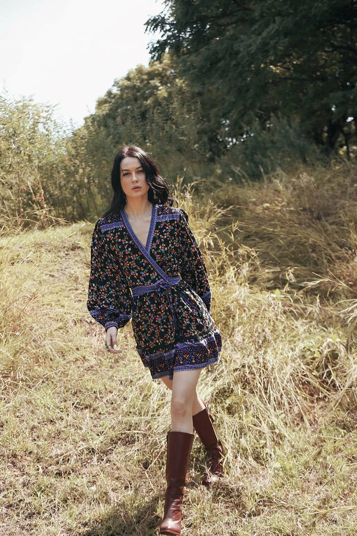 The little sister to the ‘Brenda Wrap Maxi Dress’ from the Ditsy Charm Collection, this stunning boho mini dress with a beautifully tiered cascading skirt is truly a forever piece. Fall in love with the pure romance and elegance of the cascading tiers embellished with luxe cotton lace. This dreamy vintage inspired piece moves beautifully as you walk and is sure to be noticed wherever you go. The ultimate in bohemian elegance, this gown is perfect for that special occasion or romantic date. You will feel like a true bohemian goddess in this irresistible piece.