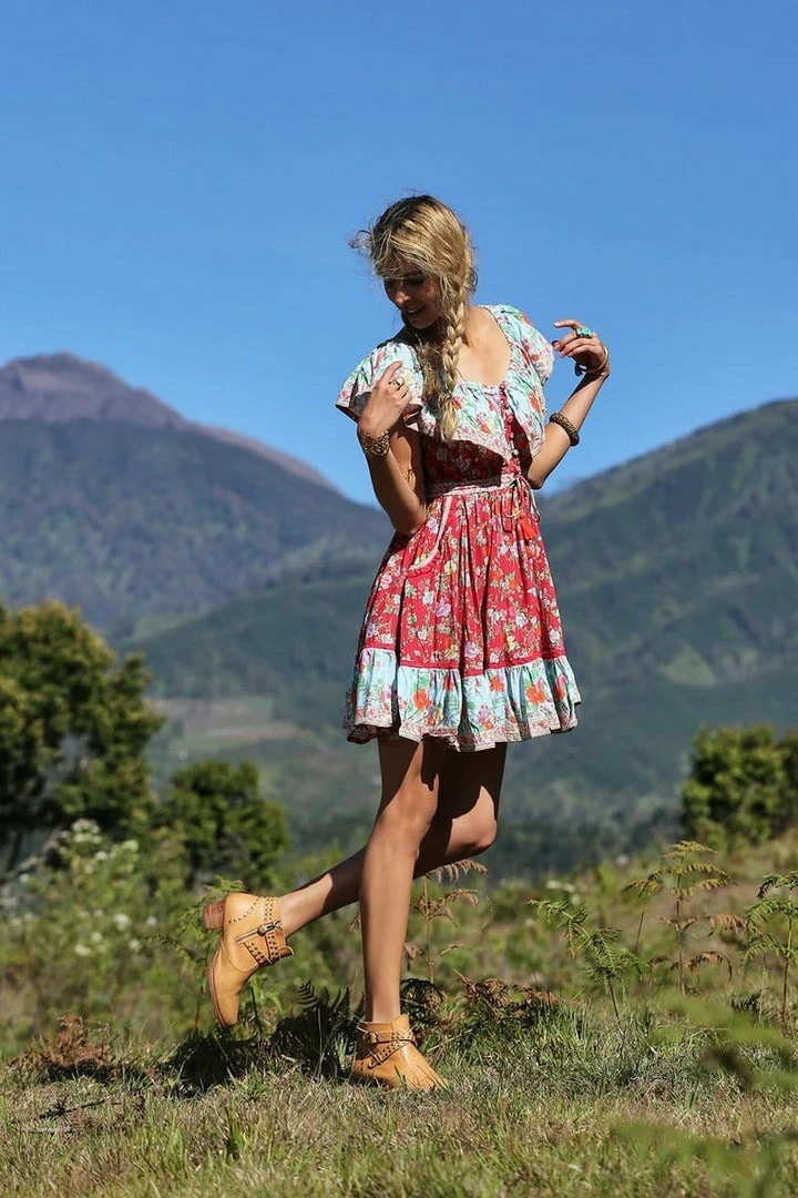 The ultimate in pretty style for our bohemian babes, the Hosannah Mini Dress is the perfect new addition to your summer wardrobe. Featuring a beautiful off-shoulder neckline that fits so comfortably you will be ready to dance the night away at your next festival! The elastic is beautifully soft, allowing it to be worn on or off the shoulder with ease. The ultimate in feminine vintage style, this mini is adorably cute and flirty. A comfortable elastic waist and gorgeous pockets add style and effortless charm to this lovely piece. Just add your favourite boots or flats and you will be ready for cocktails at the beach, festivals and fun. Be prepared to get noticed! Featuring our stunning Lost in Paradise print with vibrant flowers, this gorgeous dress is available in three colour ways, Rococo Red, Lapis Lazuli and Lotus.