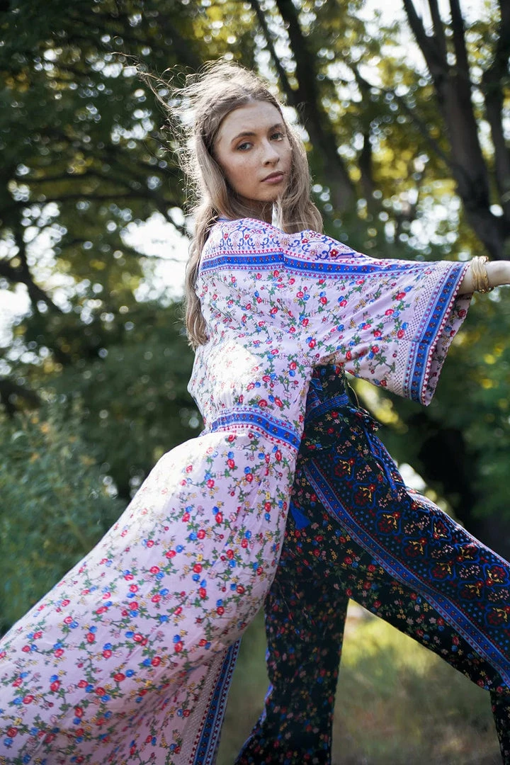 Every bohemian babe needs a fabulous kimono in her collection. Perfectly feminine and beautifully flattering on all body shapes, this exquisite kimono is a gypsy dream. The stunning Harper Kimono is an essential in your boho wardrobe. Manufactured from our super soft and comfortable rayon and showcasing our whimsical Ditsy Charm wildflowers print, this is a beautifully versatile piece. Pair the Harper Kimono with jeans and shorts and your best rocker tee for an edgy look that will take you from lunch with friends to festival wear. It will be on high rotation in your wardrobe.