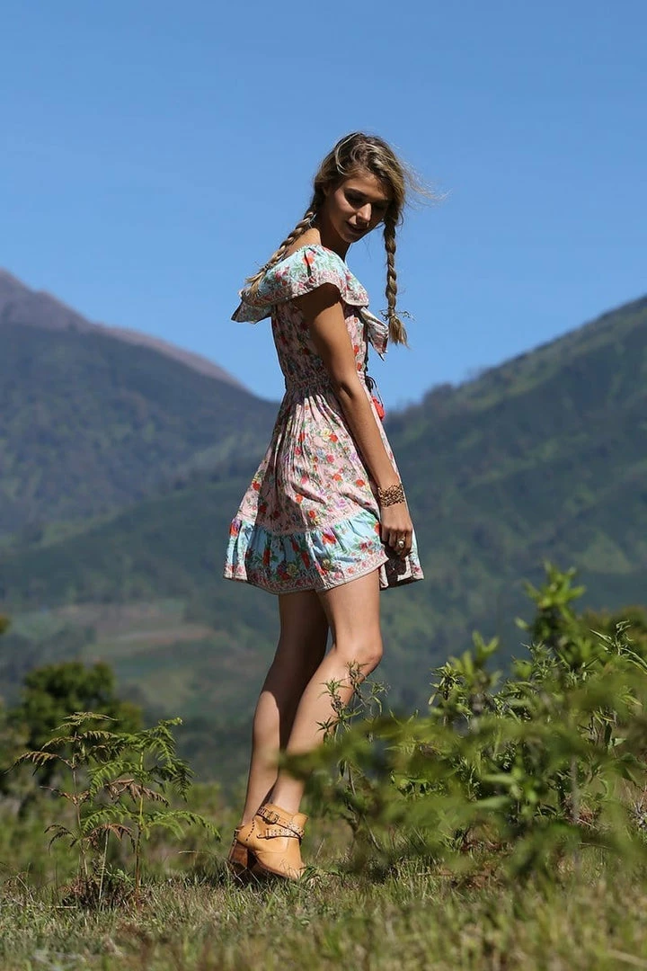 The ultimate in pretty style for our bohemian babes, the Hosannah Mini Dress is the perfect new addition to your summer wardrobe. Featuring a beautiful off-shoulder neckline that fits so comfortably you will be ready to dance the night away at your next festival! The elastic is beautifully soft, allowing it to be worn on or off the shoulder with ease. The ultimate in feminine vintage style, this mini is adorably cute and flirty. A comfortable elastic waist and gorgeous pockets add style and effortless charm to this lovely piece. Just add your favourite boots or flats and you will be ready for cocktails at the beach, festivals and fun. Be prepared to get noticed! Featuring our stunning Lost in Paradise print with vibrant flowers, this gorgeous dress is available in three colour ways, Rococo Red, Lapis Lazuli and Lotus.