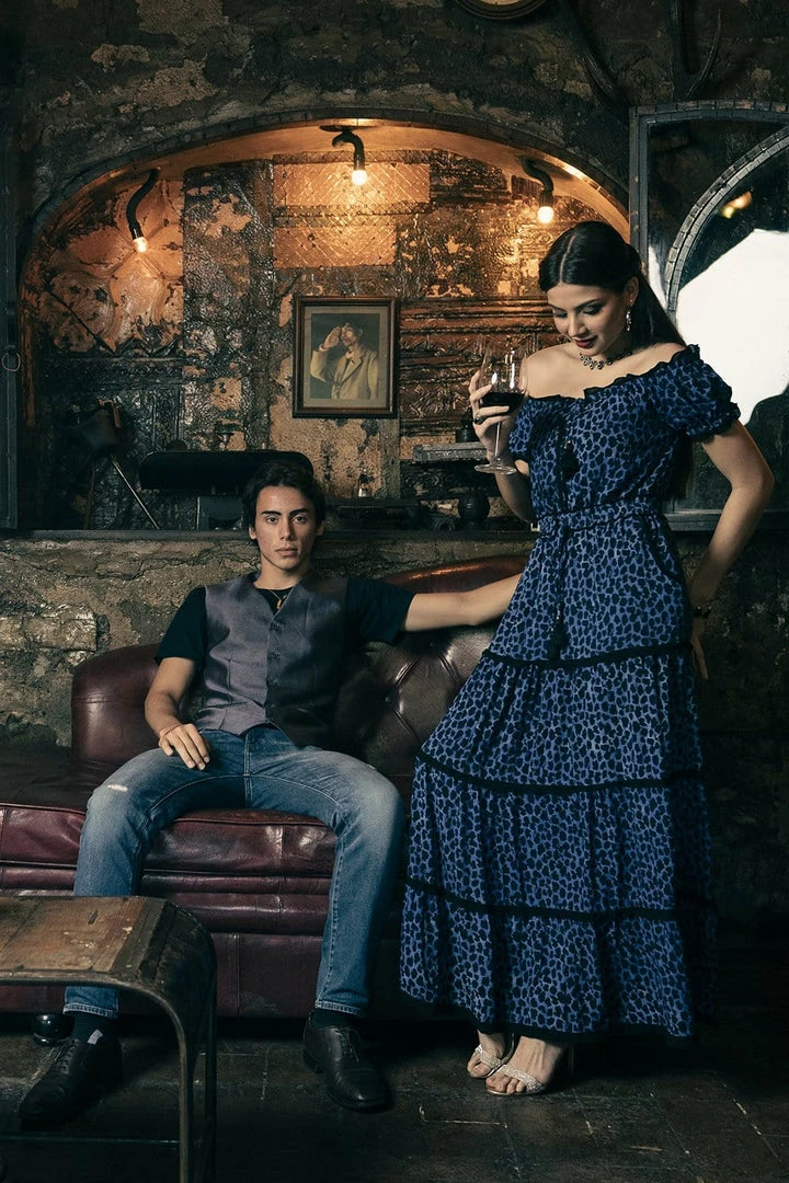Introducing our divinely sophisticated Nathalie maxi dress. This striking gown is the ultimate in feminine, sexy style. An intoxicating mix of elegance and allure, this gorgeous piece flows so beautifully with its cascading tiers and striking details. This show stopping bohemian maxi dress perfectly showcases ‘The Night Code’ print and will make a bold and feminine style statement wherever you go.Â